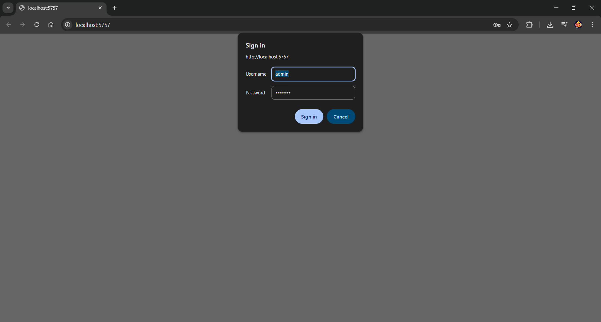 You should now see the login page as below. Enter these credentials into it and press the Sign In button: