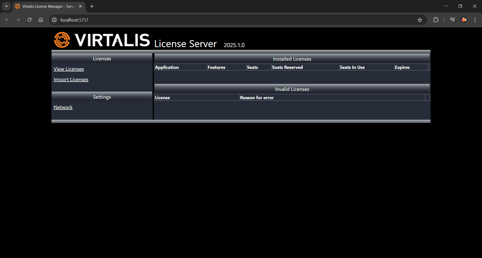 Once you have logged in, you should see the below page. From here, you can view a list of available licenses, import new ones, connect to a license server, or configure the license settings for this application.