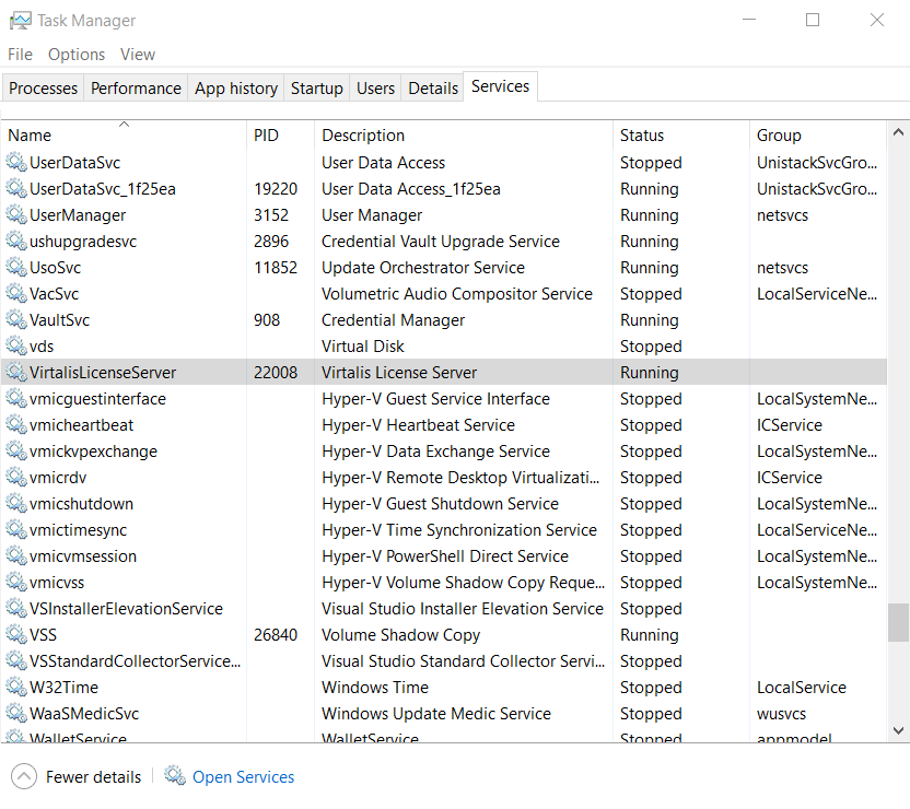 You can view the license service in Task Manager via the Services tab. From here you can stop and start it.